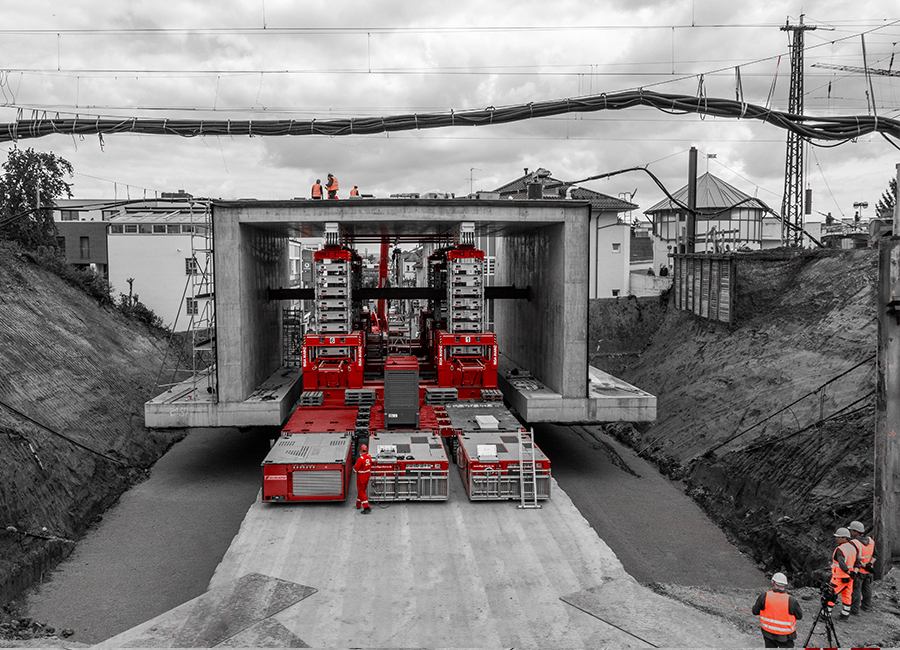 For the first time, Riga Mainz combined Scheuerle SPMT remotecontrolled heavy-duty transporters with a vessel bed and strand jacks to effectively replace several railway bridges. This in-house development has earned us a prestigious award from the German Federal Working Group for Heavy Transport and Crane Work (BSK) in the category „Assembly of the Year 2020“.