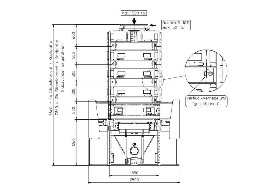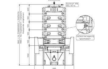 - The load is in a resting position on the mechanically secured lifting tower; therefore, intermediate storage of the load on the towers is possible without additional safety devices