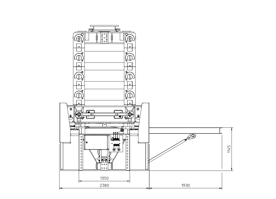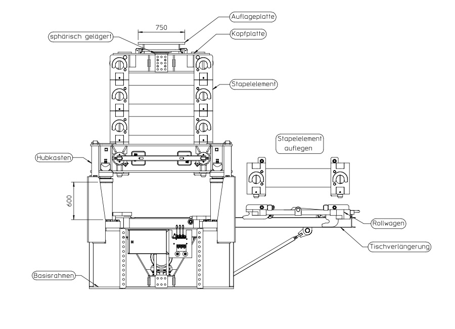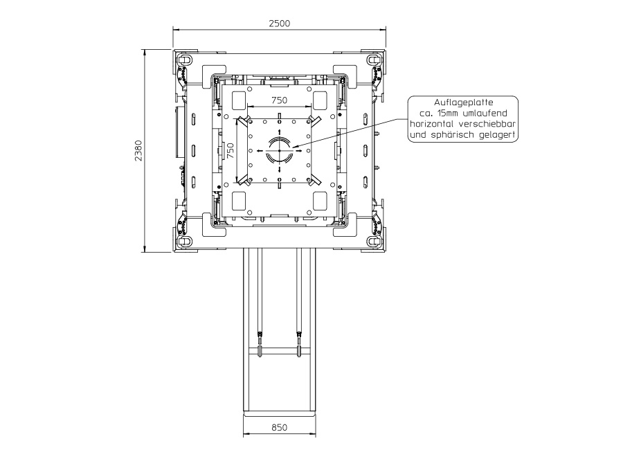 Redundant position sensors ensure that the system is raised/lowered evenly, and the square support plates (750mm) are equipped with a spherical central bearing for linear
